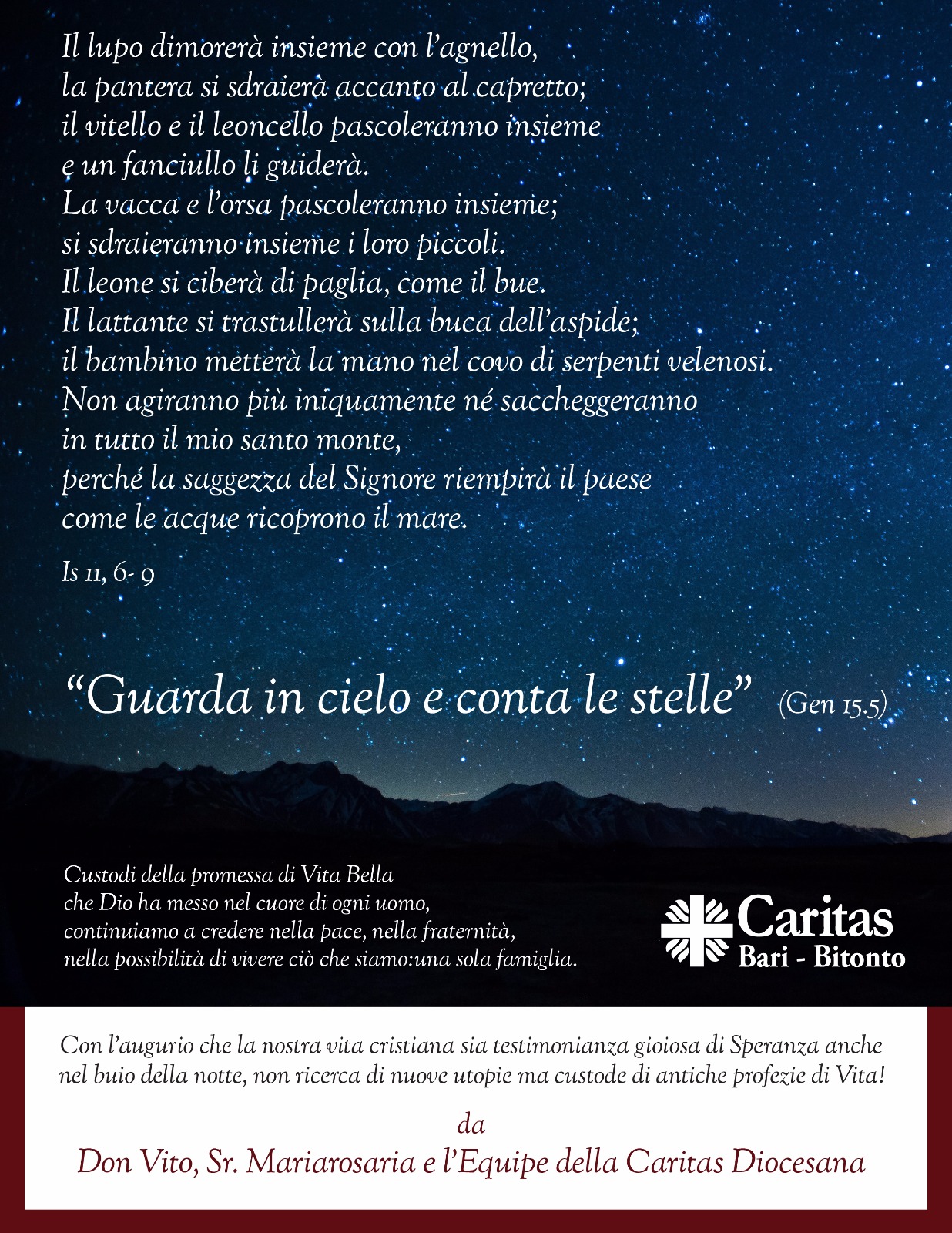 Con l’augurio che la nostra vita cristiana sia testimonianza gioiosa di Speranza anche nel buio della notte, non ricerca di nuove utopie ma custode di antiche profezie di Vita!